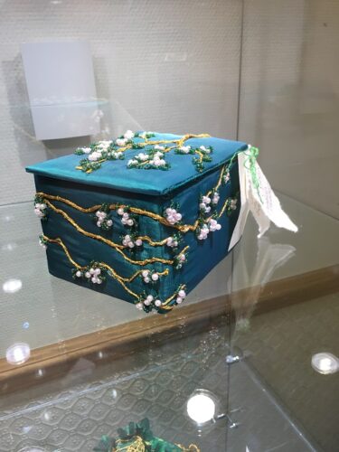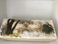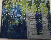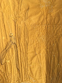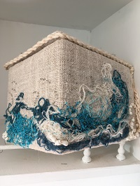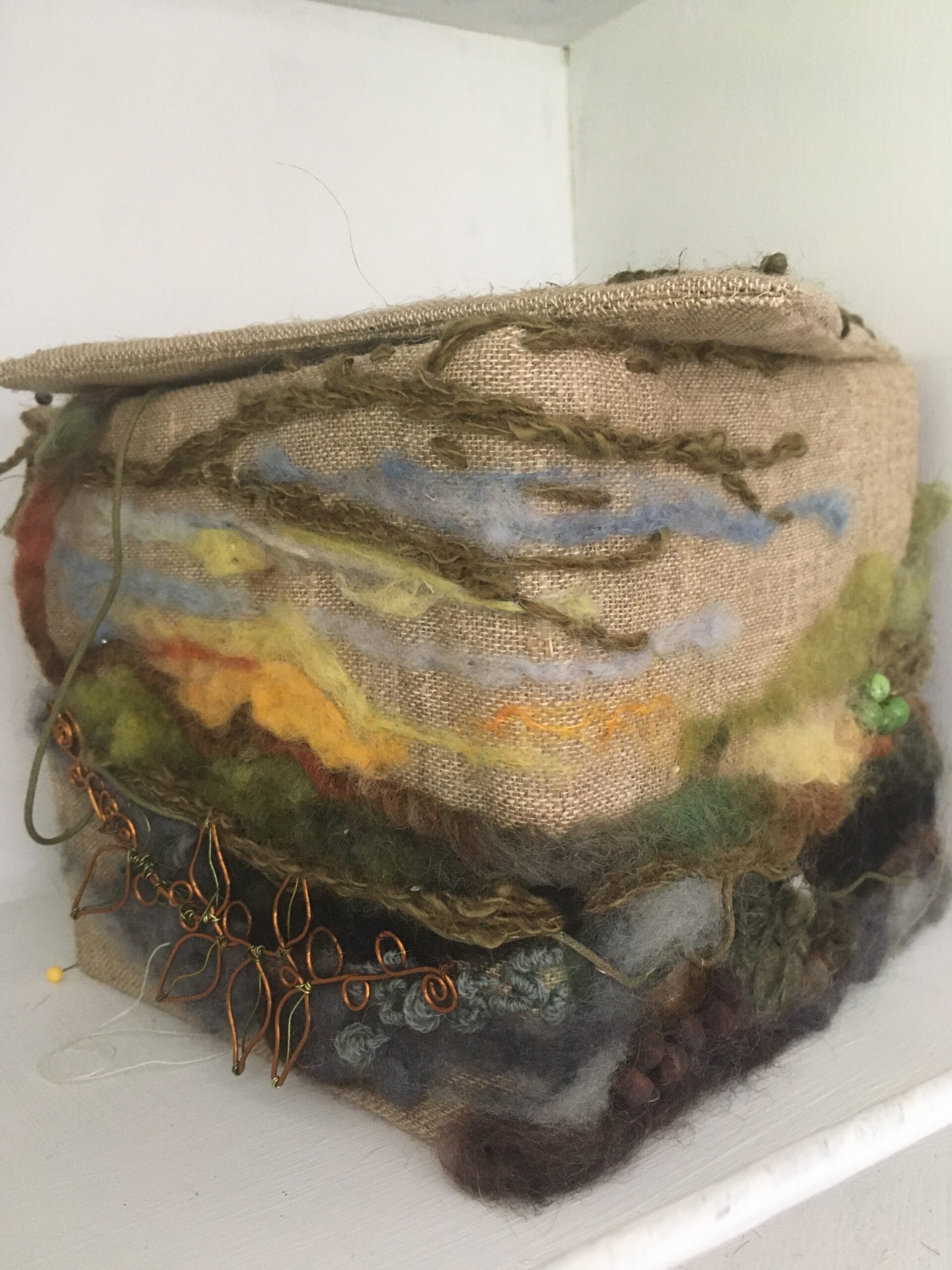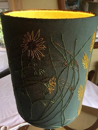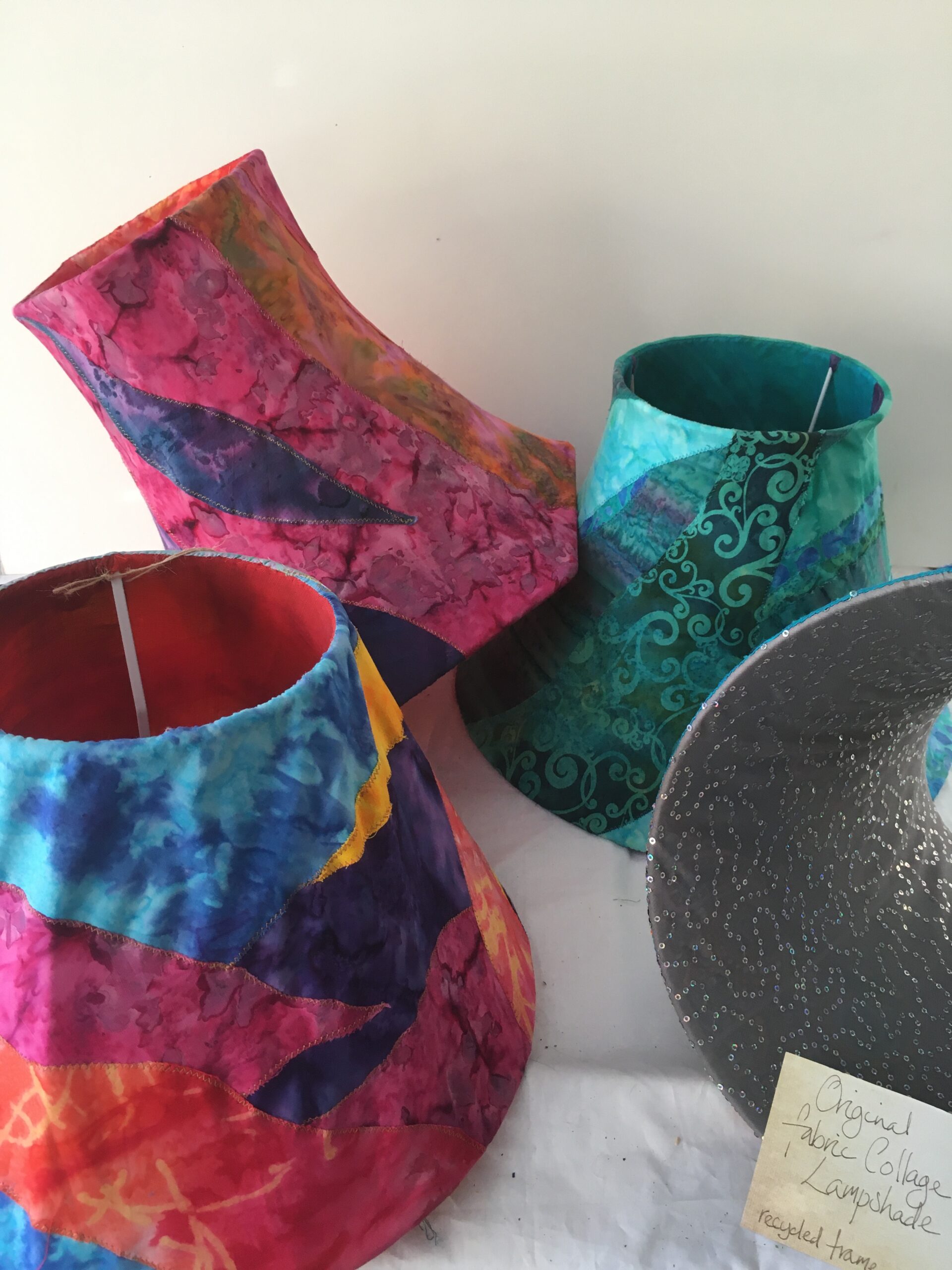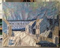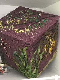 In the Gallery you will find a collection of photo's of works done from 2020 and maybe a bit before in case of the early work in quilts. From 2021, into 2022 things took a leaning towards making hand embroidered boxes- with a brief dalliance of an exhibition in the Spring of 2022. For 2023 working on a bit bigger scale and a stray idea from another artist a few experiments in lampshade embellishment went on. With the completion of the wall hanging for a local Art Centre in the Spring of 2023 I suppose it should have come as no real surprise that work would move into the world of Collage. Lots of lovely fabrics left over and a few more sewing machine skills and off we went into appliqué and rough edge collage cushions. After the immediate panic wears off it's so easy to put your name down for another exhibition. With 8 months and an exhibition date of late summer 2024 off we went again BUT this time pictures were to go on the walls, cushions added into the mix and just for want of a bit extra a revisit of a few lampshades.