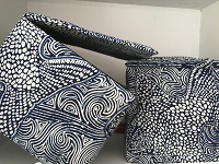 After the boxes and the lampshades came the cushions, more of an experiment in how to put together pictures in fabrics. The large wall hanging for the Arts Centre in the Village had taught me a lot but there was more to learn for making pictures that would be able to stand up to more wear and tear.